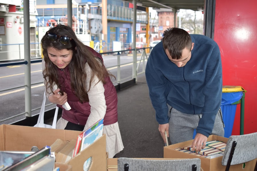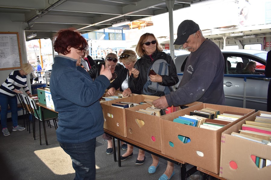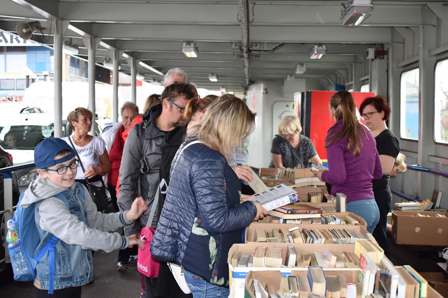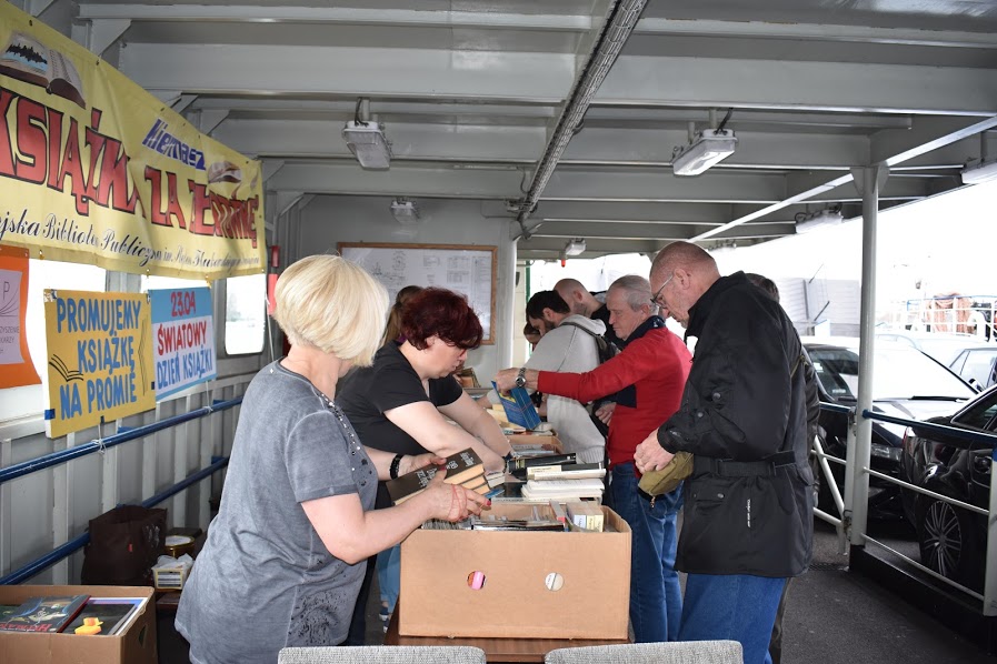 Wczoraj na promie „Bielik” pod nazwą „Promujemy książkę na promie” – mieszkańcy i turyści mogli za symboliczną złotówkę kupić książki na „pływającym” kiermaszu.