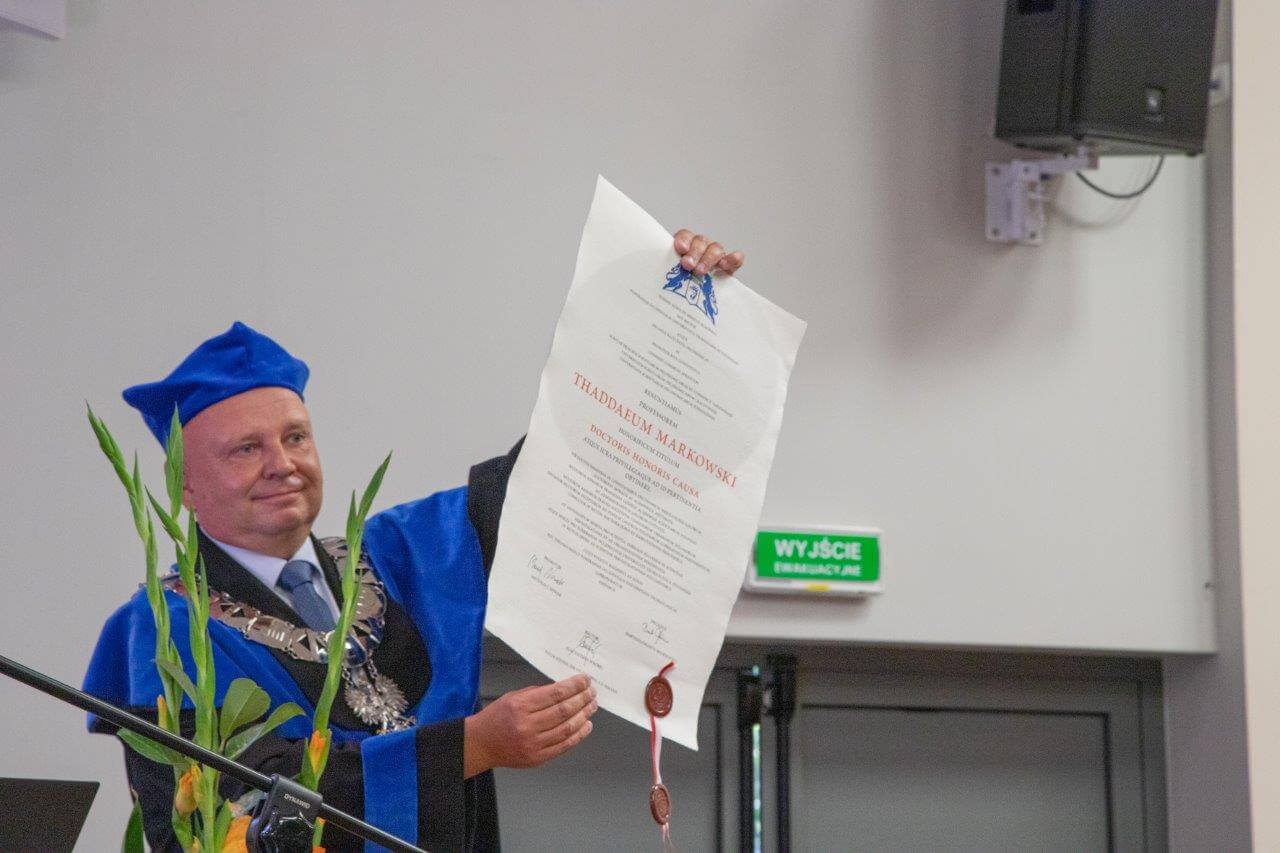 Prof. Tadeusz Markowski z Uniwersytetu Łódzkiego otrzymał tytuł doktora honoris causa Zachodniopomorskiego Uniwersytetu Technologicznego. Prof. Jacek Wróbel, rektor zachodniopomorskiej uczelni powiedział, że wkład w rozwój nauk tworzą ludzie wybitni, obdarzeni niezwykłymi talentami i charakterem. „W dzisiejszych czasach, aby osiągnąć sukces potrzebna jest zdolność i umiejętność gromadzenia wokół siebie ludzi zarażonych wspólną pasją. Prof. Markowski niewątpliwie legitymuje się takimi zdolnościami”.