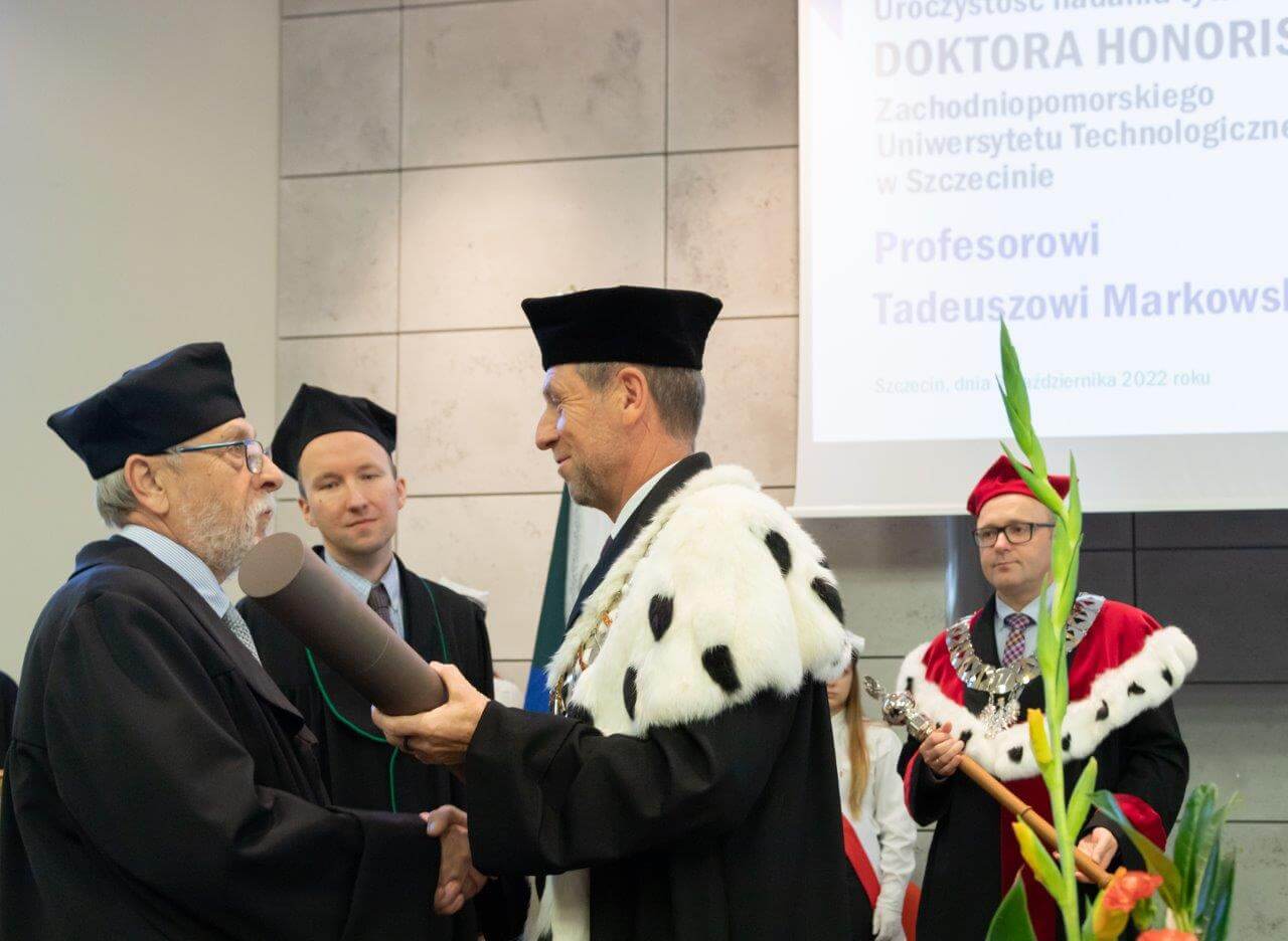 Prof. Tadeusz Markowski z Uniwersytetu Łódzkiego otrzymał tytuł doktora honoris causa Zachodniopomorskiego Uniwersytetu Technologicznego. Prof. Jacek Wróbel, rektor zachodniopomorskiej uczelni powiedział, że wkład w rozwój nauk tworzą ludzie wybitni, obdarzeni niezwykłymi talentami i charakterem. „W dzisiejszych czasach, aby osiągnąć sukces potrzebna jest zdolność i umiejętność gromadzenia wokół siebie ludzi zarażonych wspólną pasją. Prof. Markowski niewątpliwie legitymuje się takimi zdolnościami”.