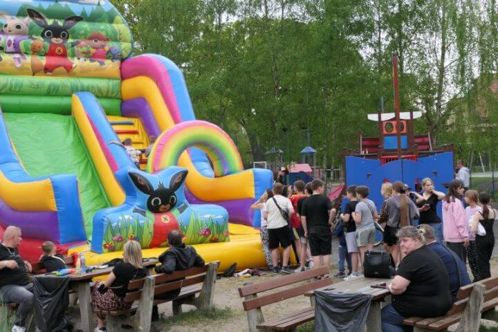 Sobotnie popołudnie i wieczór mieszkańcy Karsiborza spędzili na wspaniałej majówce osiedlowej z koncertami. Tego dnia na placu przy Filii Miejskiego Domu Kultury w Karsiborze przez wiele godzin bawił się tłum uczestników. Zróżnicowana oferta rozrywkowo – gastronomiczna, sportowa, rekreacyjna i prozdrowotna zapewniała wysoki poziom satysfakcji nawet w gronie wymagających uczestników. Na karsiborskiej scenie występowały dzieci z MDK, a ze świetnymi koncertami wystąpił Krzysztof Koniarek oraz zespół MR GÓRAL. W ciągu wielu godzin odbywały się konkursy plastyczne i trwały animacje dla dzieci. Nie zabrakło malowania twarzy i zaplatania kolorowych warkoczyków, a dmuchany zamek był dosłownie oblegany przez dzieciaki. Podczas tego majówkowego pikniku można było skorzystać również ze strefy przewoźnego SPA i Fotobudki 360. Znakomite biesiadowanie zapewniał bogaty catering. A w godzinach wieczornych trwała zabawa taneczna.
