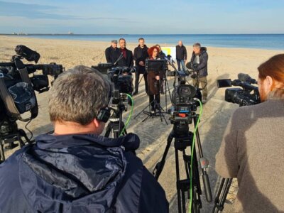 Na świnoujskiej plaży, w miejscu planowanej budowy terminala kontenerowego – dziś nazywanego „Przylądkiem Pomerania” – odbyła się wspólna konferencja prasowa władz Świnoujścia i Międzyzdrojów. Samorządowcy, przedstawiciele mieszkańców, branży turystycznej przedstawili swoje stanowisko wobec planowanej inwestycji. Uczestnicy spotkania apelują o rozpoczęcie realnego dialogu, rzetelne analizy i poszanowanie interesu mieszkańców.
