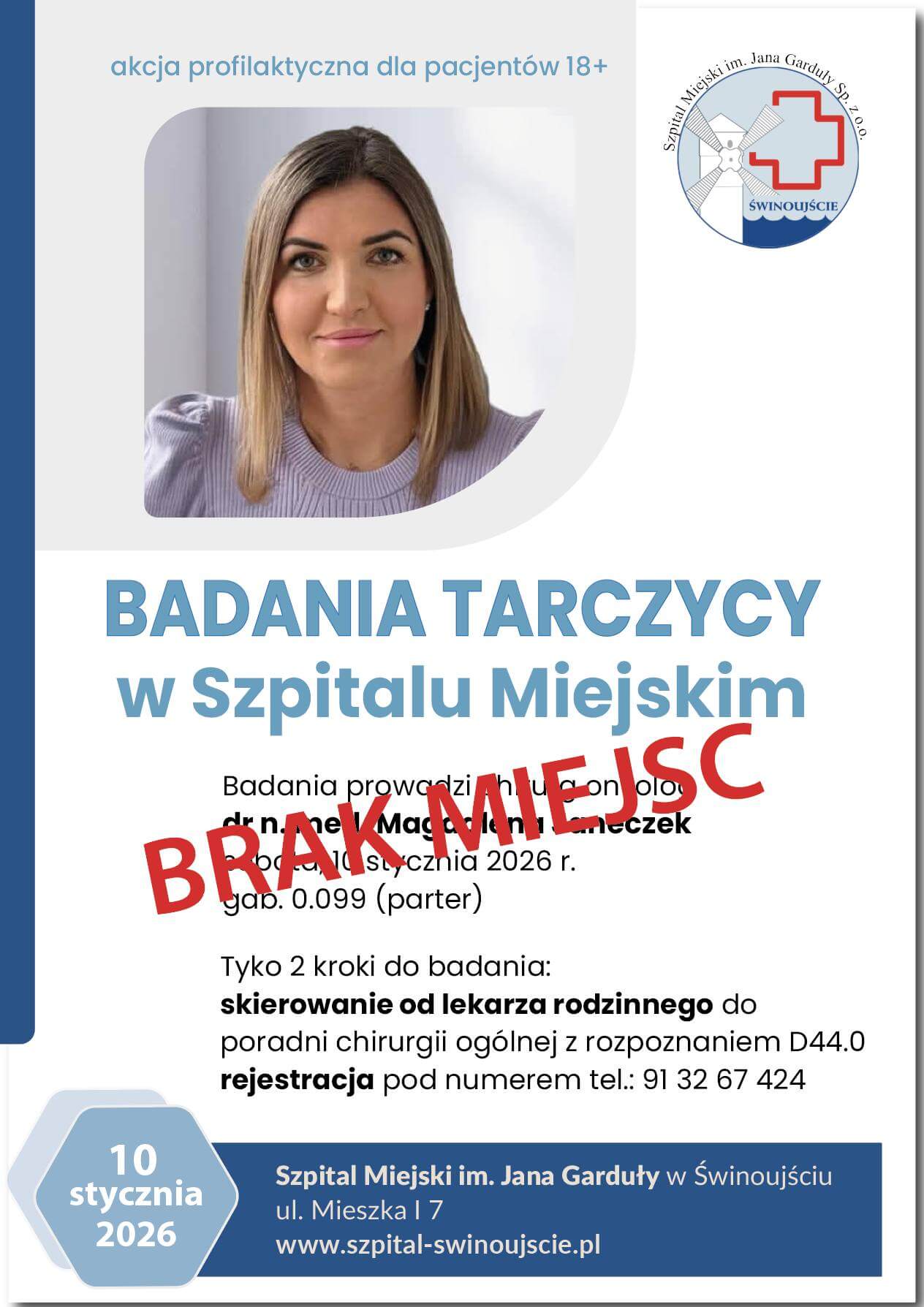 Badania poprowadzi lek. Magdalena Janeczek, chirurg onkologiczny z Zachodniopomorskiego Centrum Onkologii w Szczecinie, specjalizująca się w diagnostyce i leczeniu chorób tarczycy.