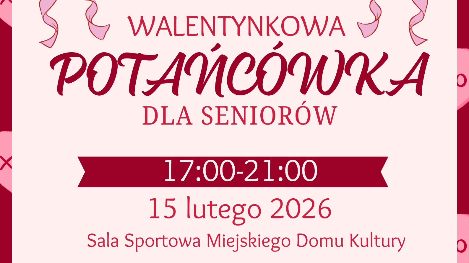 Z okazji Dnia Babci i Dziadka spotkamy się 15 lutego w Sali Sportowej Miejskiego Domu Kultury na bezpłatnej potańcówce pełnej znanych i lubianych przebojów.