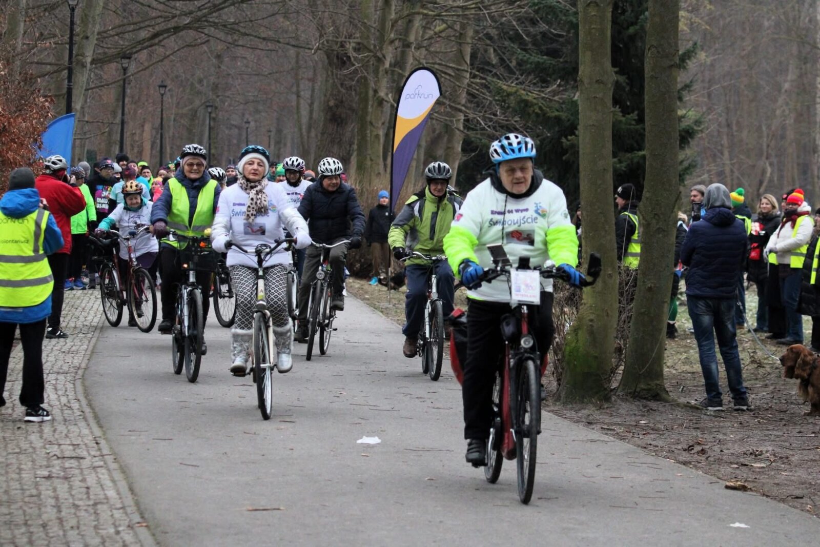 Zanim uczestnicy parkrun wyruszyli na trasę, alejkami parku przejechali rowerzyści ŚWIR pod przewodnictwem Wiesław Król, dźwiękiem dzwonków oraz swoją obecnością podkreślilii udział w tej pięknej akcji.