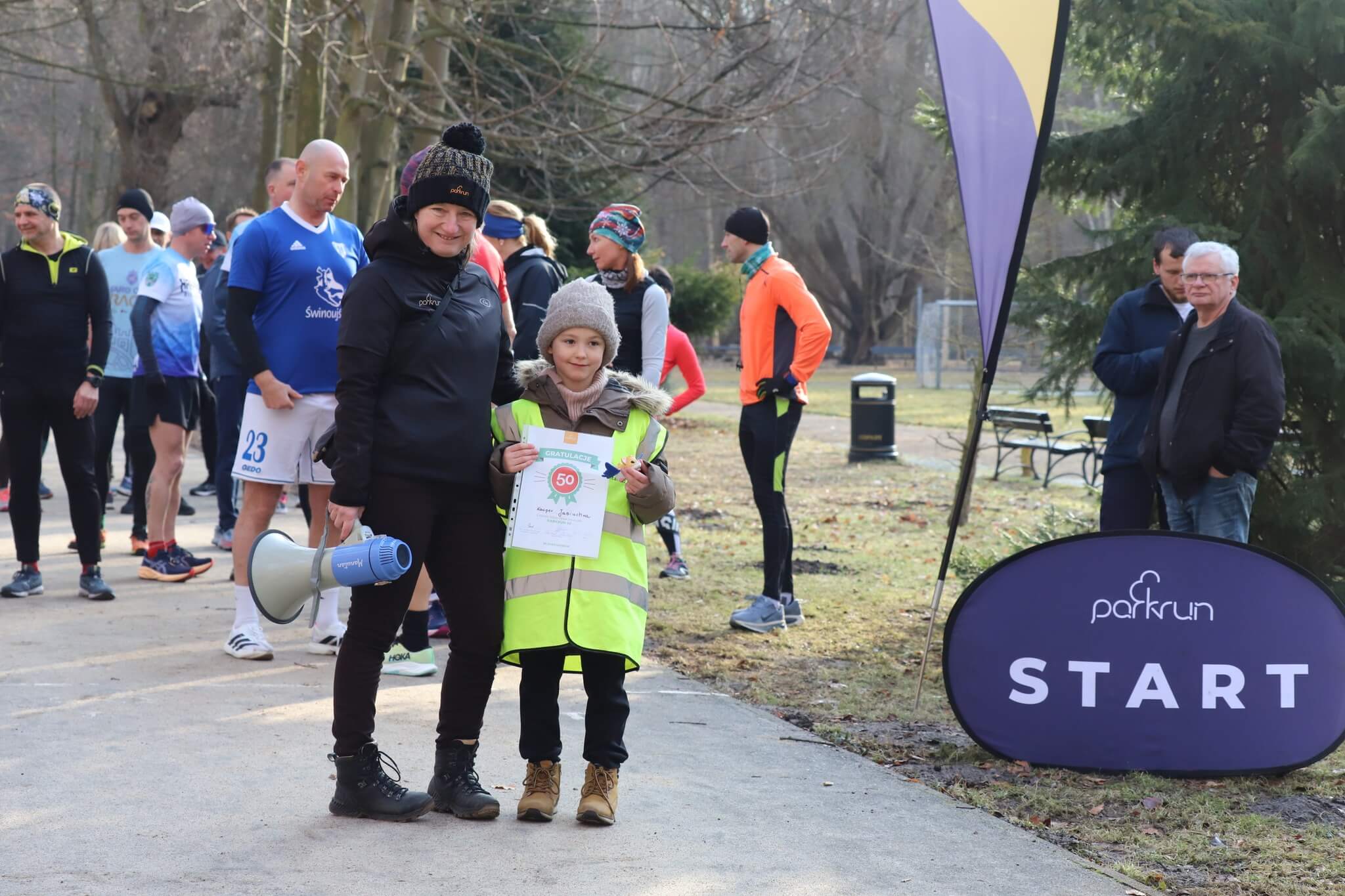 Szczególne brawa należą się Kacprowi naszemu najmłodszemu wolontariuszowi, który podczas tego spotkania otrzymał dyplom i dołączył do Klubu 50 za 50 wolontariatów. To jeden z przykładów jak łatwo wkręcić się w parkrun.