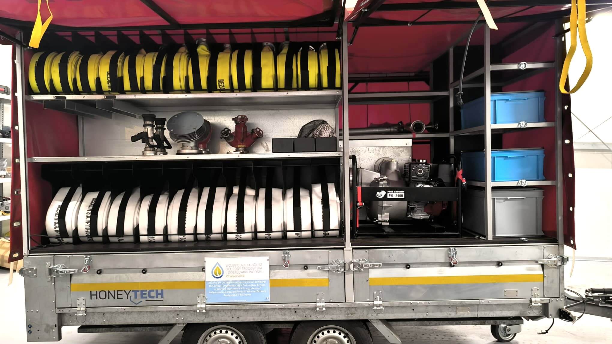 Przyczepa pomoże szybciej budować magistrale wodne do pompowania wody podczas gaszenia pożarów, a także do wypompowywania brudnej wody podczas walki z lokalnymi podtopieniami.