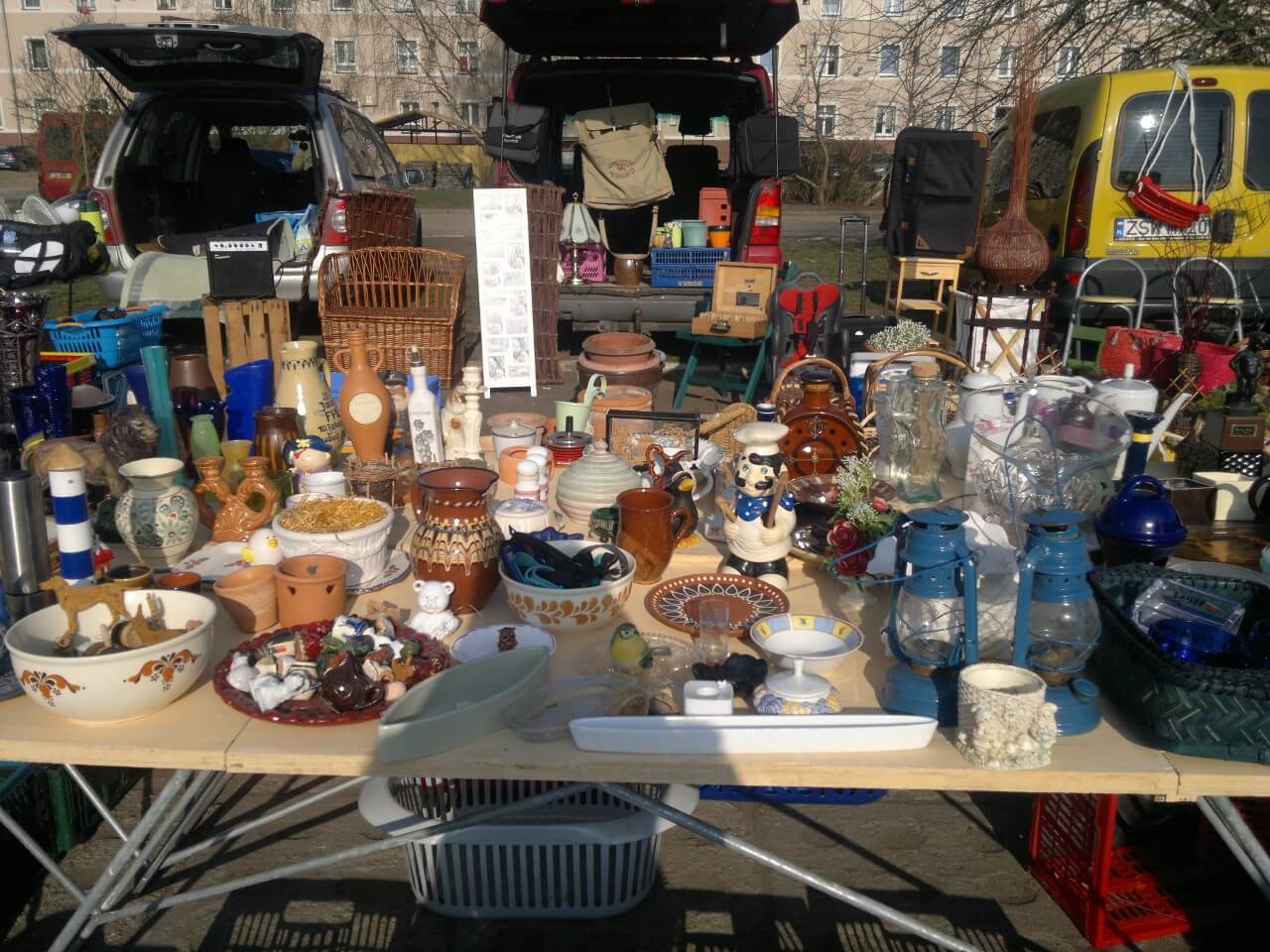 Sprzedający powinien zadbać o odpowiednie przygotowanie swojego stanowiska – stolik, parasol, przenośna szafka czy wieszak będą doskonałymi rozwiązaniami, które umożliwią zaprezentowanie swoich przedmiotów w jak najlepszy sposób.